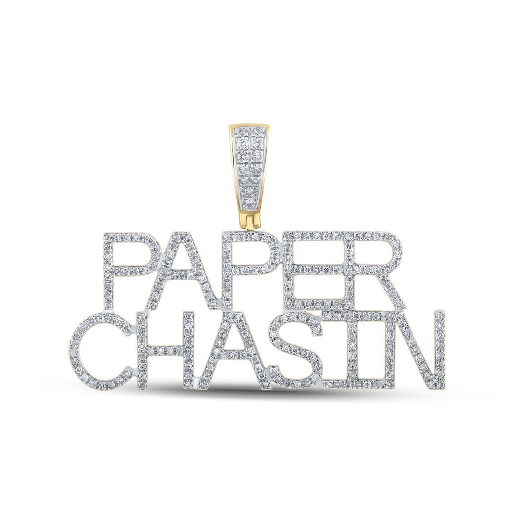 PAPER CHASIN Diamond Pendant .62cttw 10K Yellow Gold. Solid 10K Yellow Gold with Genuine Diamonds Round Cut hand set. Intricate details with precision micro pave prong setting. Real bling bling diamond pendant iced out. All Real Diamond Hip Hop Jewelry with nice details and quality at an affordable price.