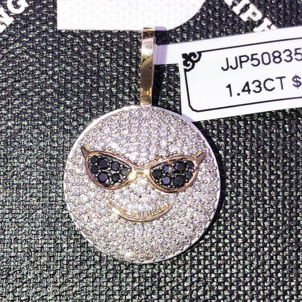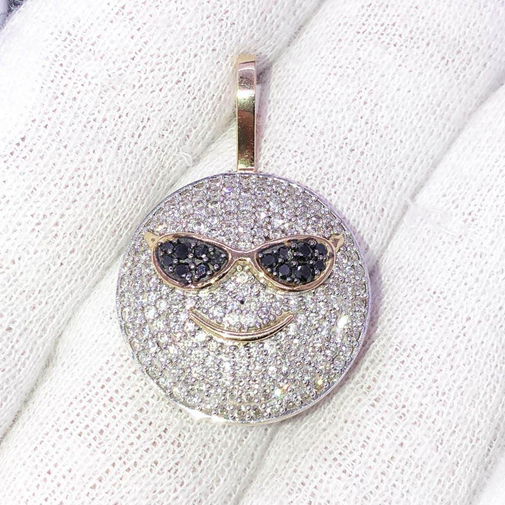 Sunglasses Face Diamond 1.43 Carat Pendant 10K Yellow Gold. Solid 10K Yellow Gold with Genuine Diamonds Round Cut Micro Pave Prong Set. Real Diamond Hip Hop Jewelry with nice details and quality at an affordable price