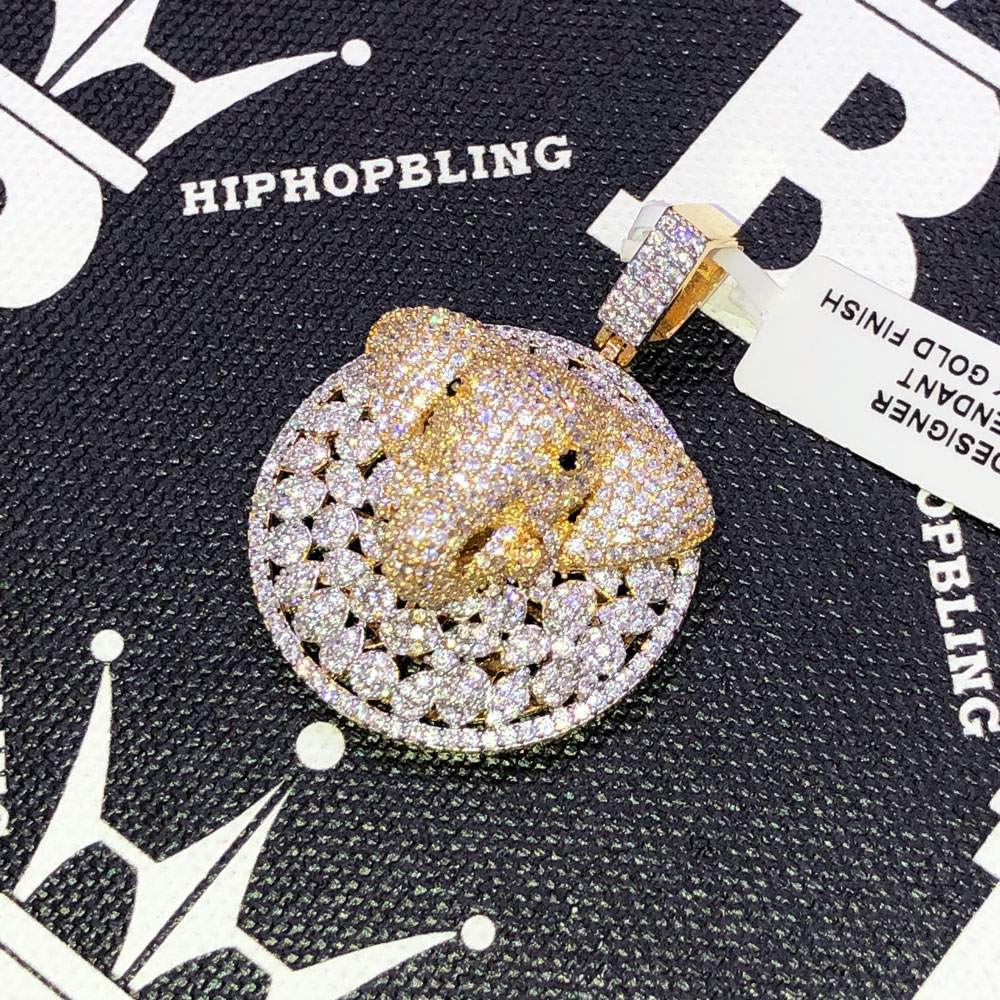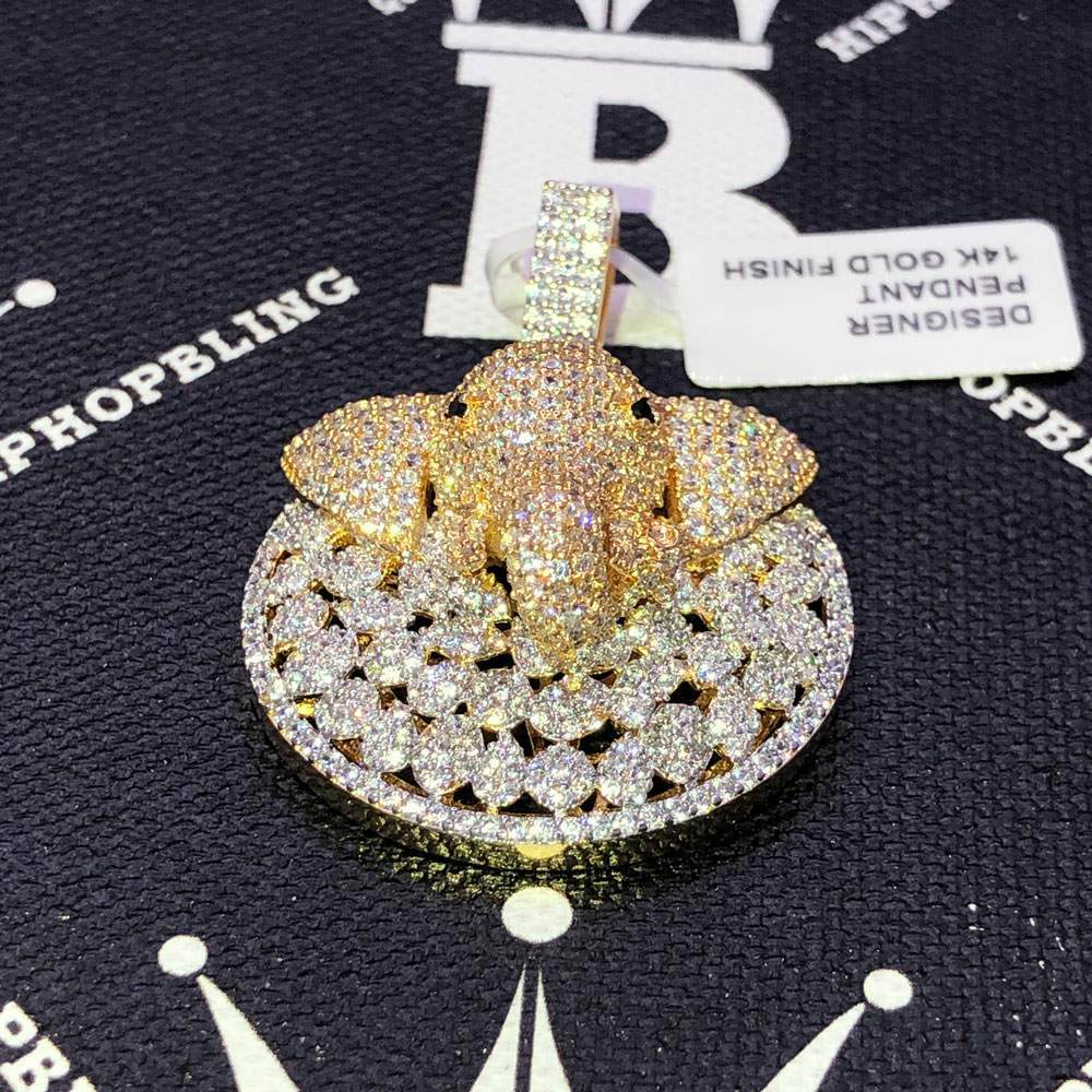 Elephant Medallion CZ Hip Hop Bling Bling Pendant. Limited Edition Iced Out Hip Hop Pendant. Stones are VVS Simulated Diamonds Prong Set, the same way genuine diamond hip hop jewelry is made. Stand out from the crowd with this this detailed quality made iced out pendant.