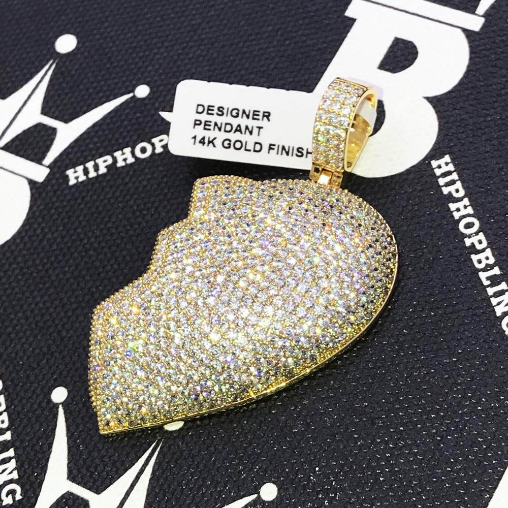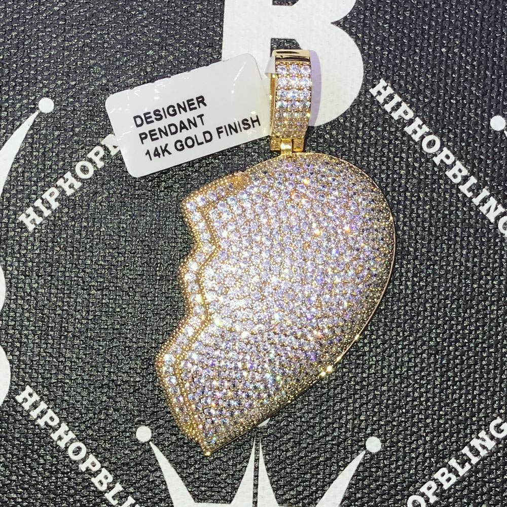 Half Broken Heart CZ Hip Hop Bling Bling Pendant. Limited Edition Iced Out Hip Hop Pendant. Stones are VVS Simulated Diamonds Prong Set, the same way genuine diamond hip hop jewelry is made. Stand out from the crowd with this this detailed quality made iced out pendant.