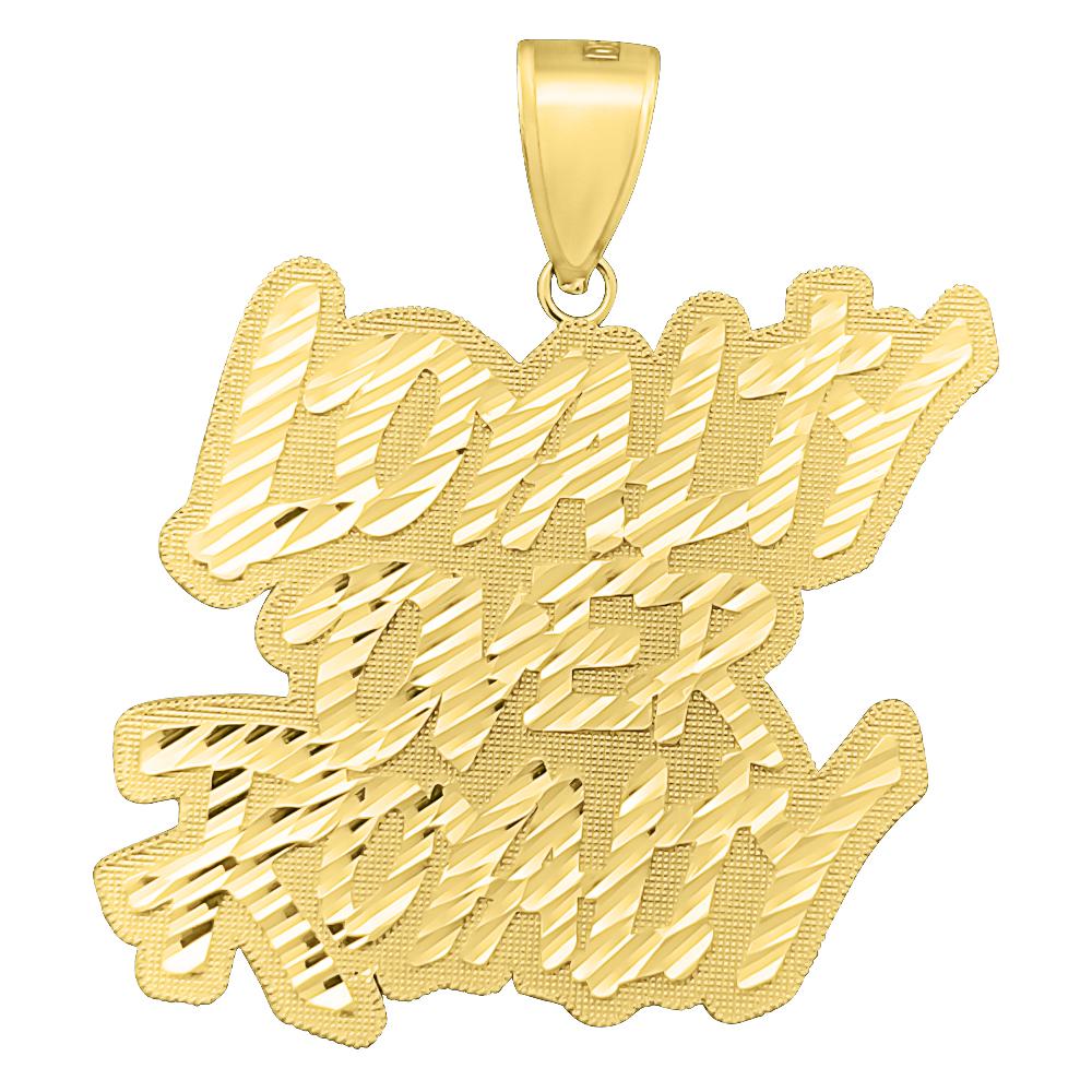 Loyalty Over Royalty DC 10K Yellow Gold Pendant. Crafted from Solid 10K Yellow Gold and intricately detailed with Diamond Cuts for added sparkle. All real solid 10K Gold quality made at an affordable price.