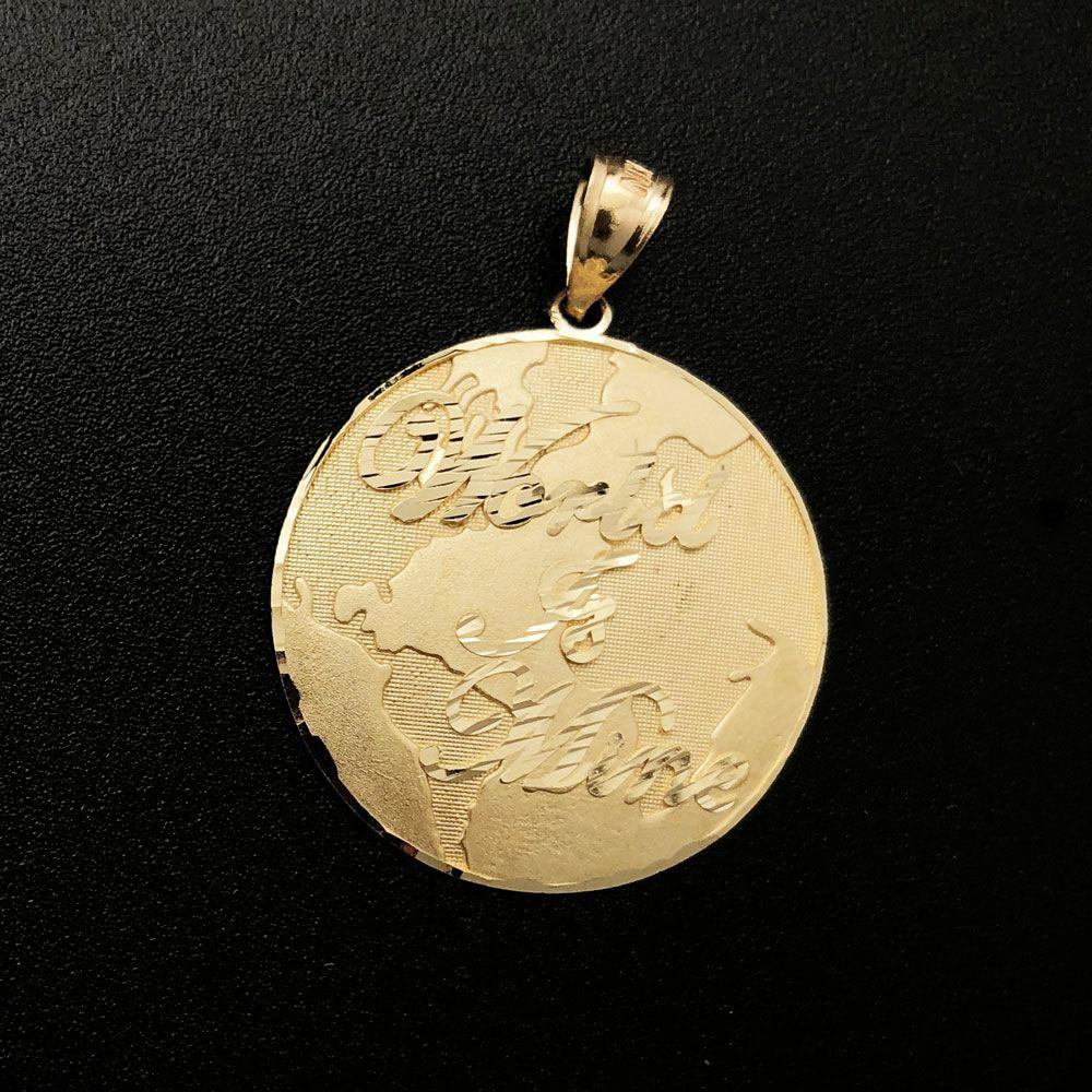 World is Mine Globe World Map DC 10K Yellow Gold Pendant. Crafted from Solid 10K Yellow Gold and highly detailed with Diamond Cuts for added sparkle. All real Gold quality made at an affordable price.
