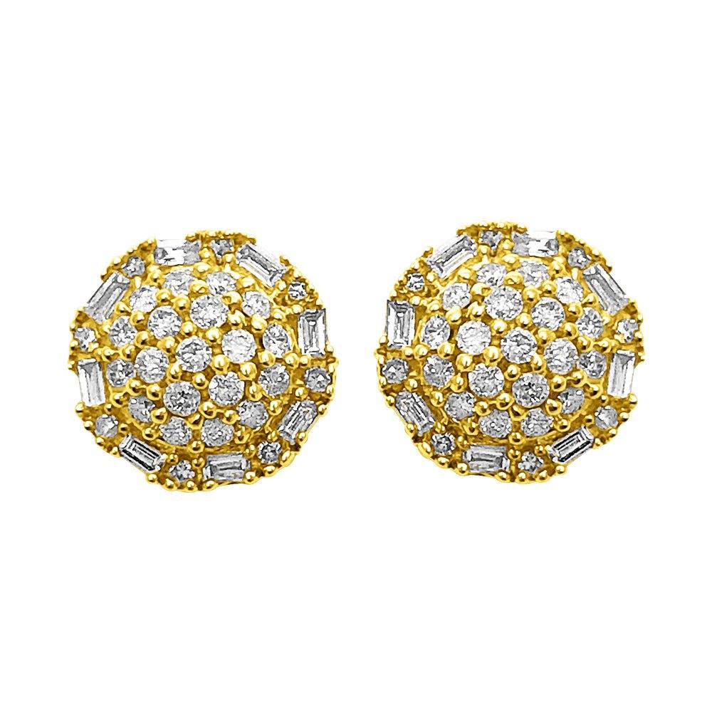 Domed Baguette Circle Diamond Earrings .33cttw 10K Yellow Gold. Ice your ears up with these shiny all real diamond hip hop earrings. Diamonds are real and hand set with prongs. Order your iced out diamond earrings today.