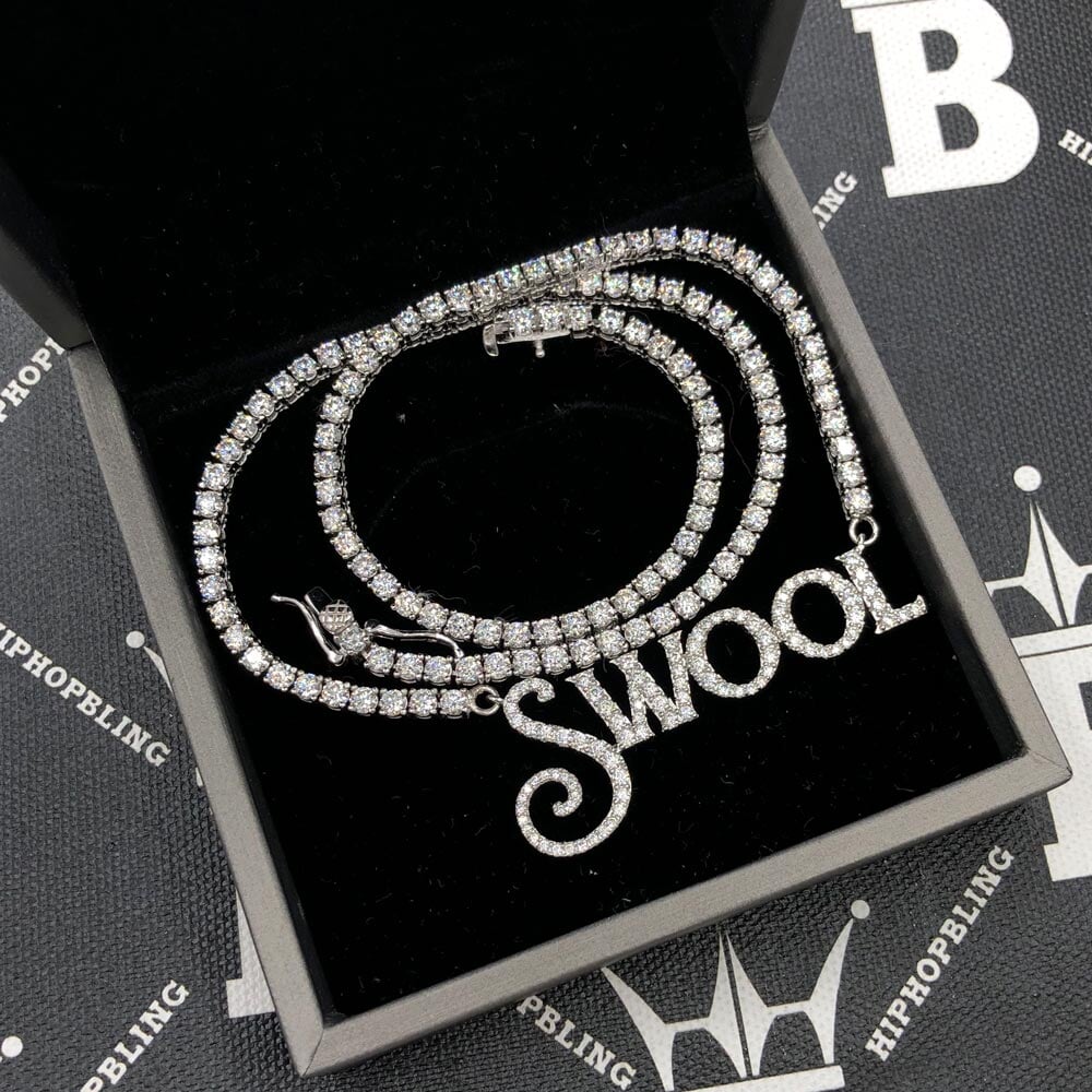 Custom Script Block VVS Moissanite/Diamond Pendant Tennis Chain