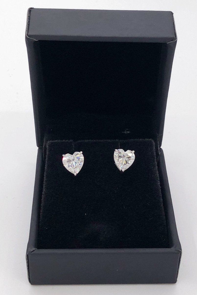 Heart Cut Moissanite VVS D Stud Earrings .925 Sterling Silver