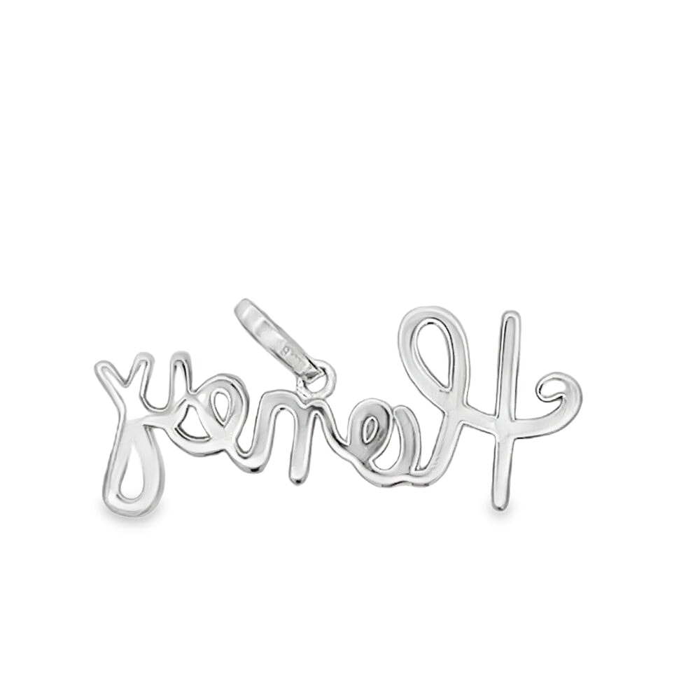 Honey Cursive Letters Name Charm Iced Out Moissanite Pendant .925 Sterling Silver. This iced out Moissanite Pendant is simply breathtaking and displays an incredible bling bling shine. We insisted on using the finest Moissanite stones available to craft this perfect high end 'diamond' bling bling Moissanite Micro Pave Charm. Moissanite stones are carbon based stones just like real Diamonds. The benefit of our Moissanite hip hop jewelry is that you get a better shine for much less money than genuine Diamonds. Our Moissanite Stones have a higher refractive index than real Diamonds and rank 9-9.5 on Mohs hardness scale.