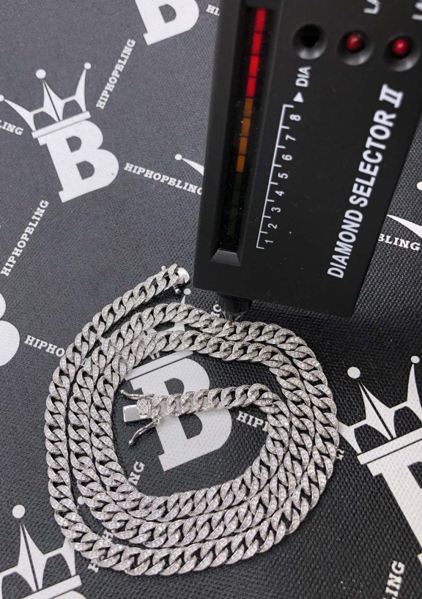 Moissanite 6MM Cuban Iced Out Chain .925 Sterling Silver. This iced out Cuban Chain is simply breathtaking and displays an incredible bling bling shine. We insisted on using the finest Moissanite stones available to craft these perfect high end 'diamond' Iced Out Cuban Link Necklaces. Moissanite stones are carbon based stones just like real Diamonds*. The benefit of our Moissanite Cuban Link Chains are that you get a better shine for much less money. Our Moissanite Stones have a higher refractive index than real Diamonds and rank approximately 9.5 on Mohs hardness scale.