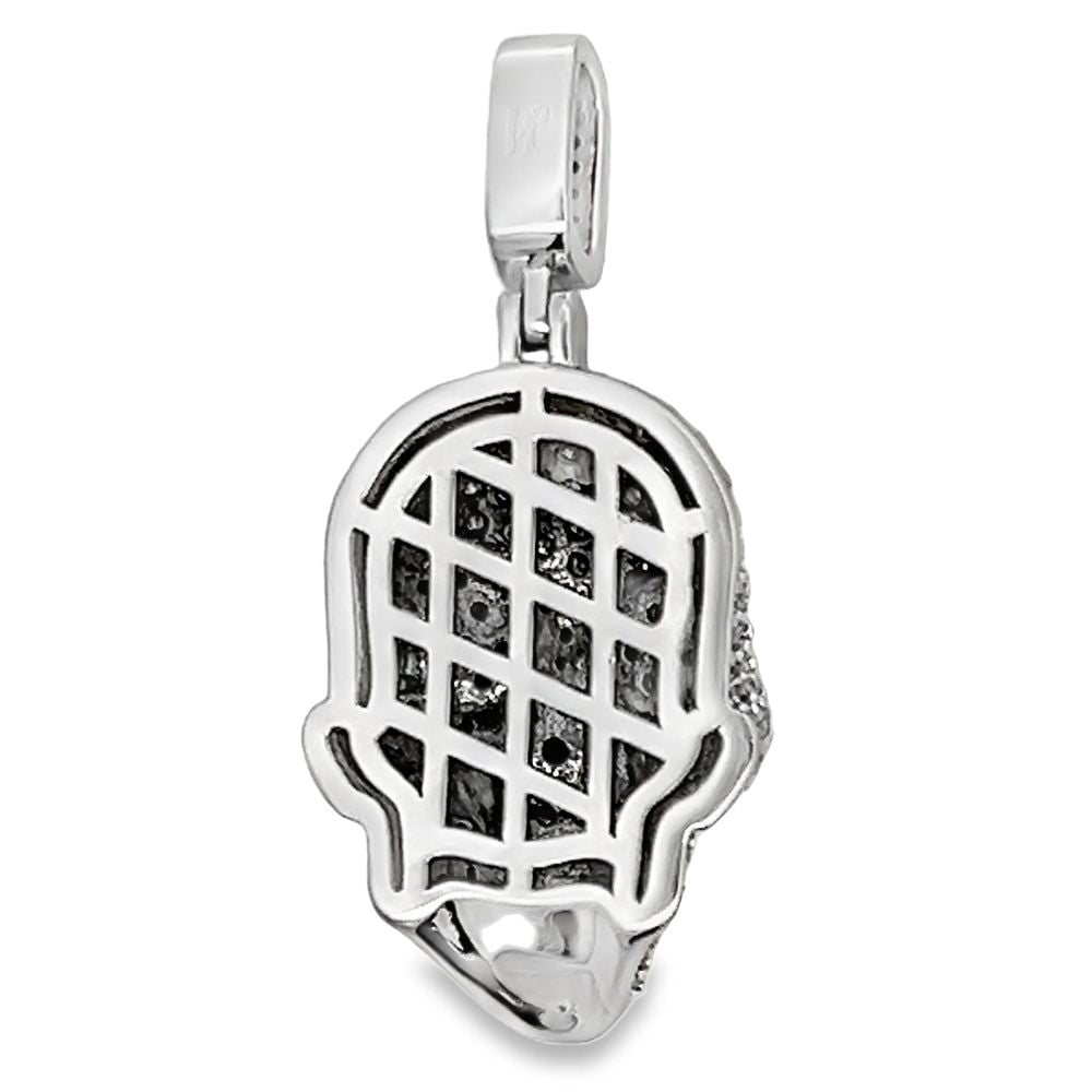Skull Detailed Iced Out Moissanite Pendant .925 Sterling Silver. This iced out Moissanite Pendant is simply breathtaking and displays an incredible bling bling shine. We insisted on using the finest Moissanite stones available to craft this perfect high end 'diamond' bling bling Moissanite Micro Pave Charm. Moissanite stones are carbon based stones just like real Diamonds. The benefit of our Moissanite hip hop jewelry is that you get a better shine for much less money than genuine Diamonds. Our Moissanite Stones have a higher refractive index than real Diamonds and rank 9-9.5 on Mohs hardness scale.