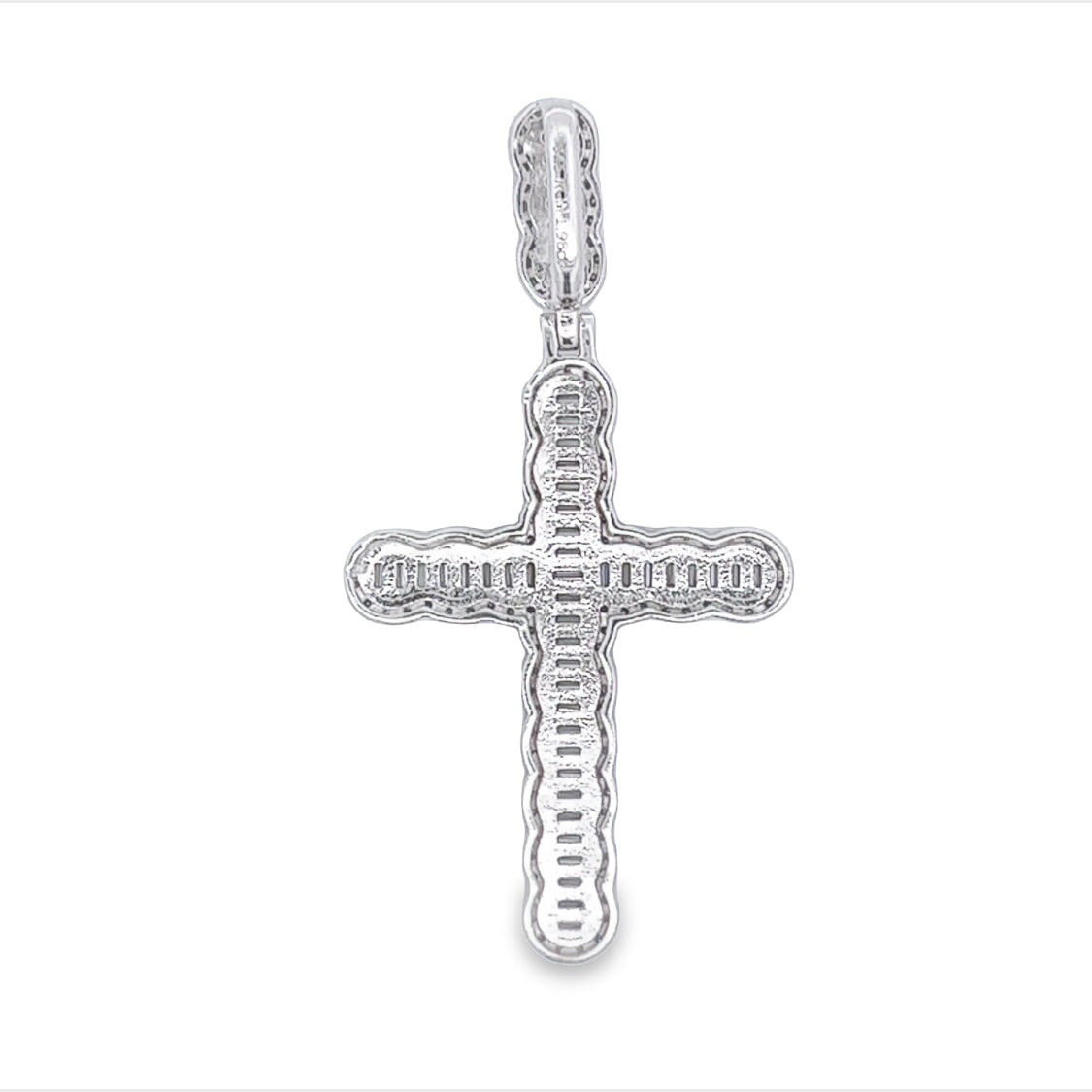 Bubble Cross Baguette VVS Moissanite Pendant .925 Sterling Silver