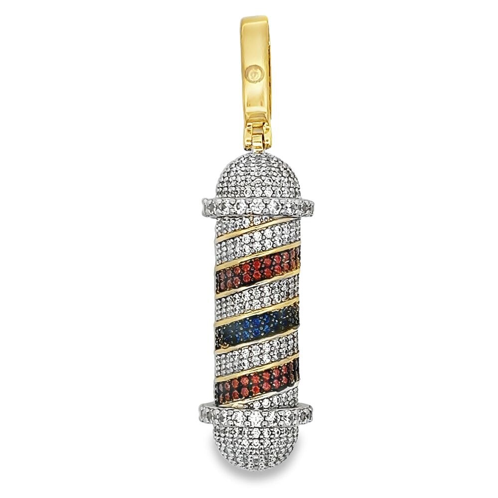 3D Barber Pole CZ Hip Hop Iced Out Pendant