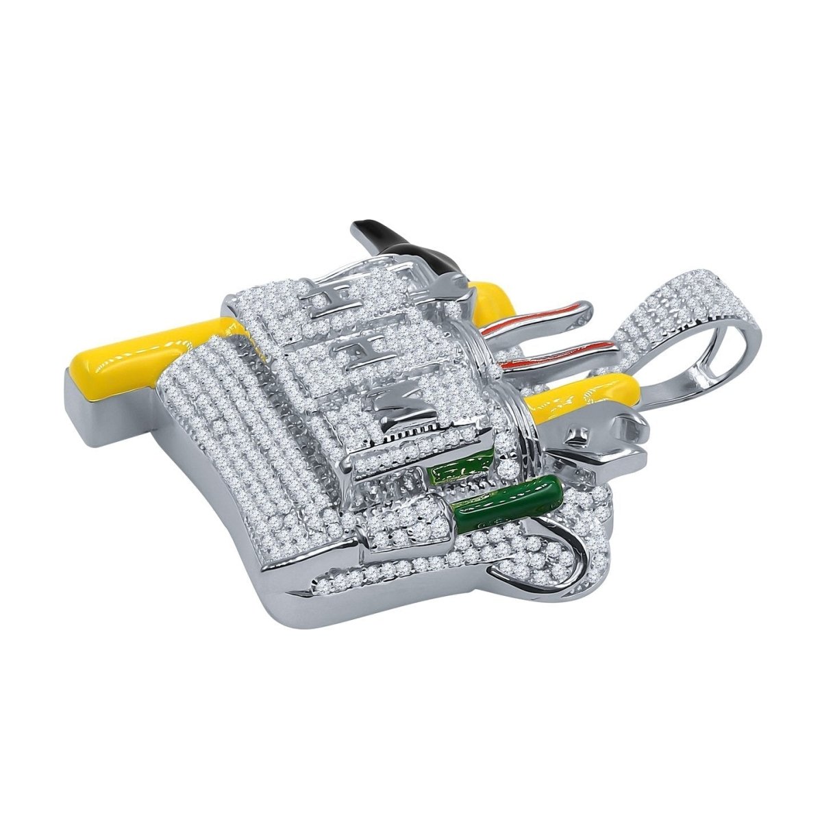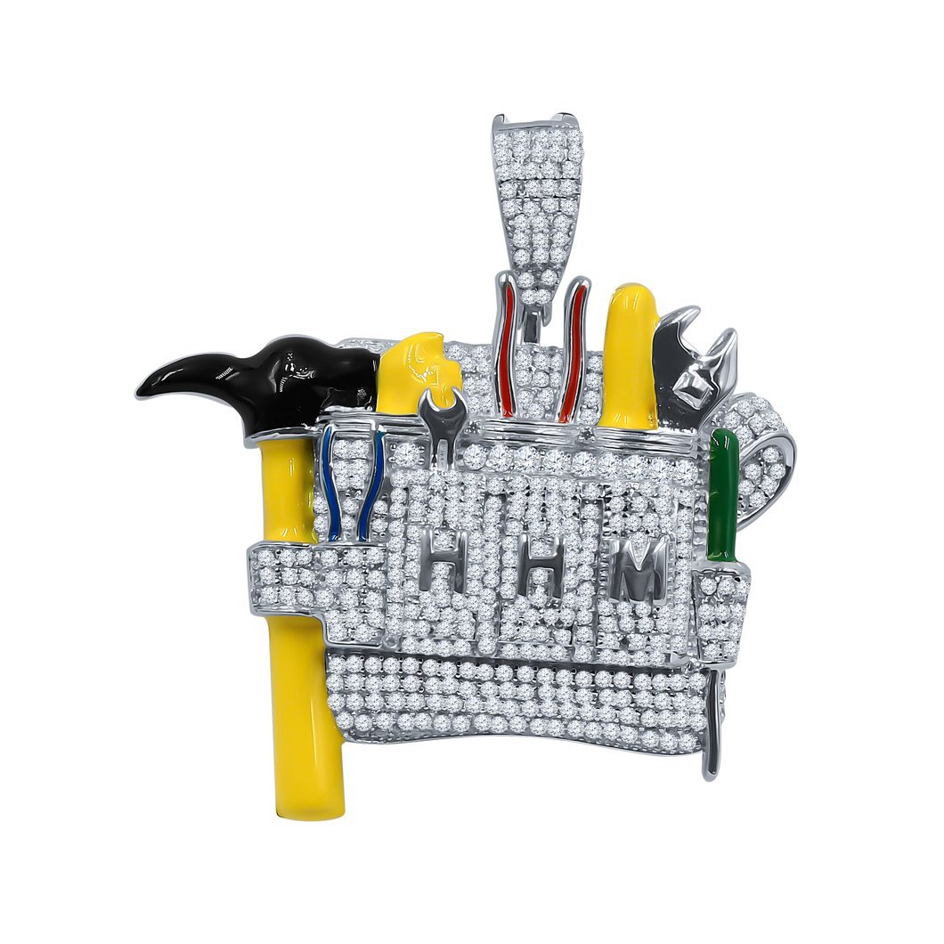 HAM Hammer Tool Kit VVS CZ Iced Out Pendant.  Crafted from Solid .925 Sterling Silver with an incredible bling bling shine.  Limited Edition Iced Out Hip Hop Pendant.  Stones are VVS Simulated Diamonds Prong Set, the same way genuine diamond hip hop jewelry is made.  Stand out from the crowd with this this detailed quality made iced out pendant.