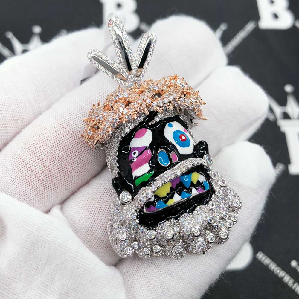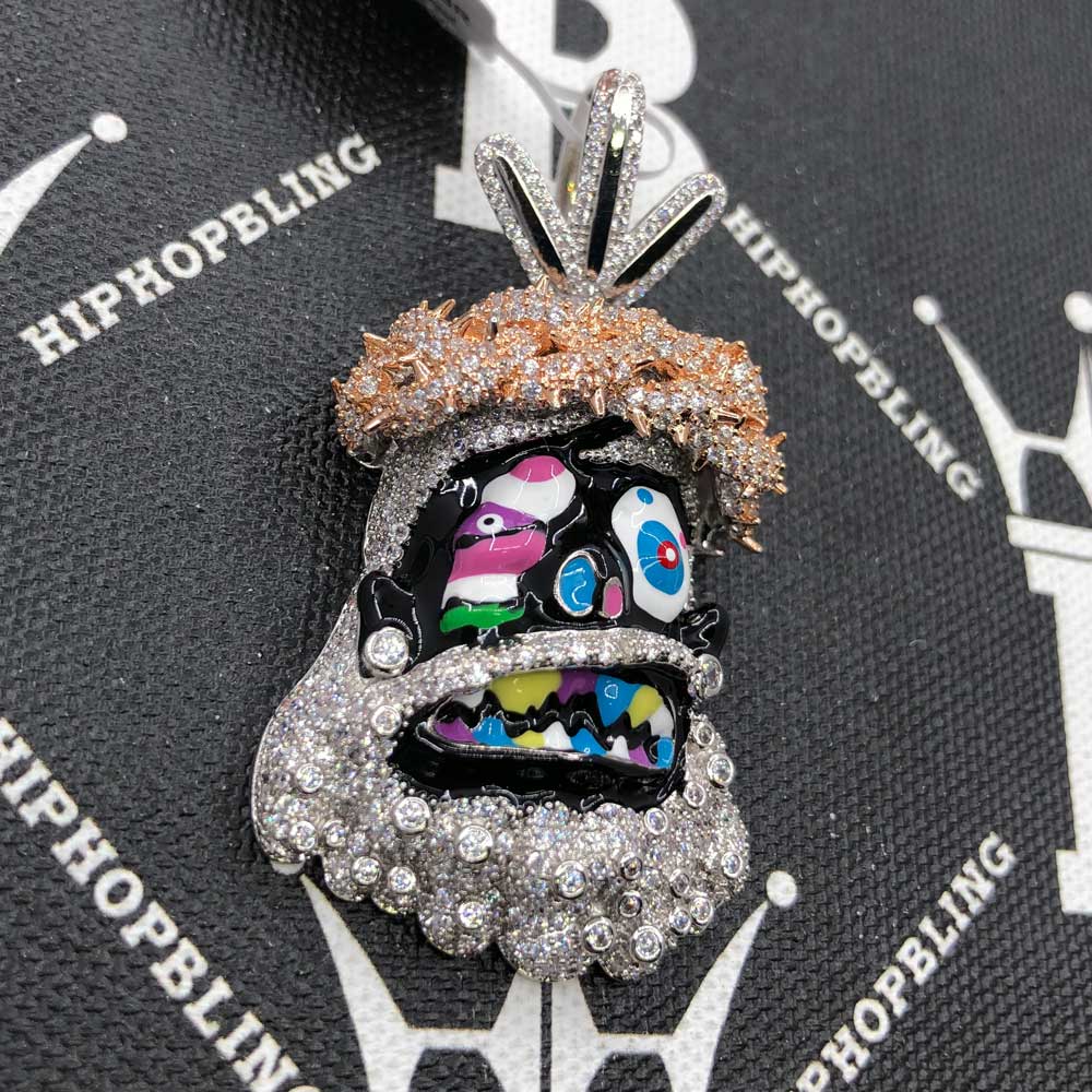 Cartoon Jesus Black Face VVS CZ Iced Out Pendant. Limited Edition Iced Out Hip Hop Pendant. Quality crafted with intricate details . Stones are VVS Simulated Diamonds Prong Set, the same way genuine diamond hip hop jewelry is made. Stand out from the crowd with this this detailed quality made iced out pendant.
