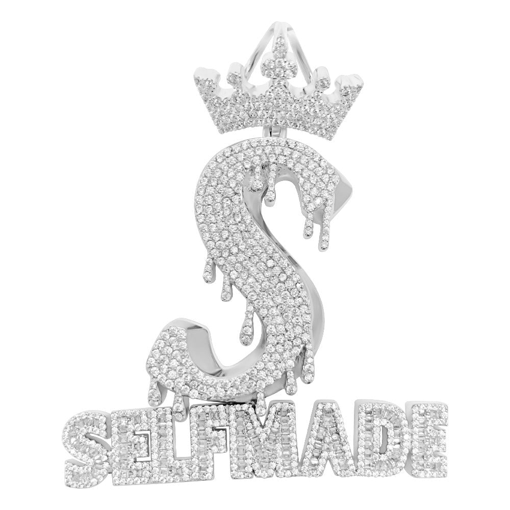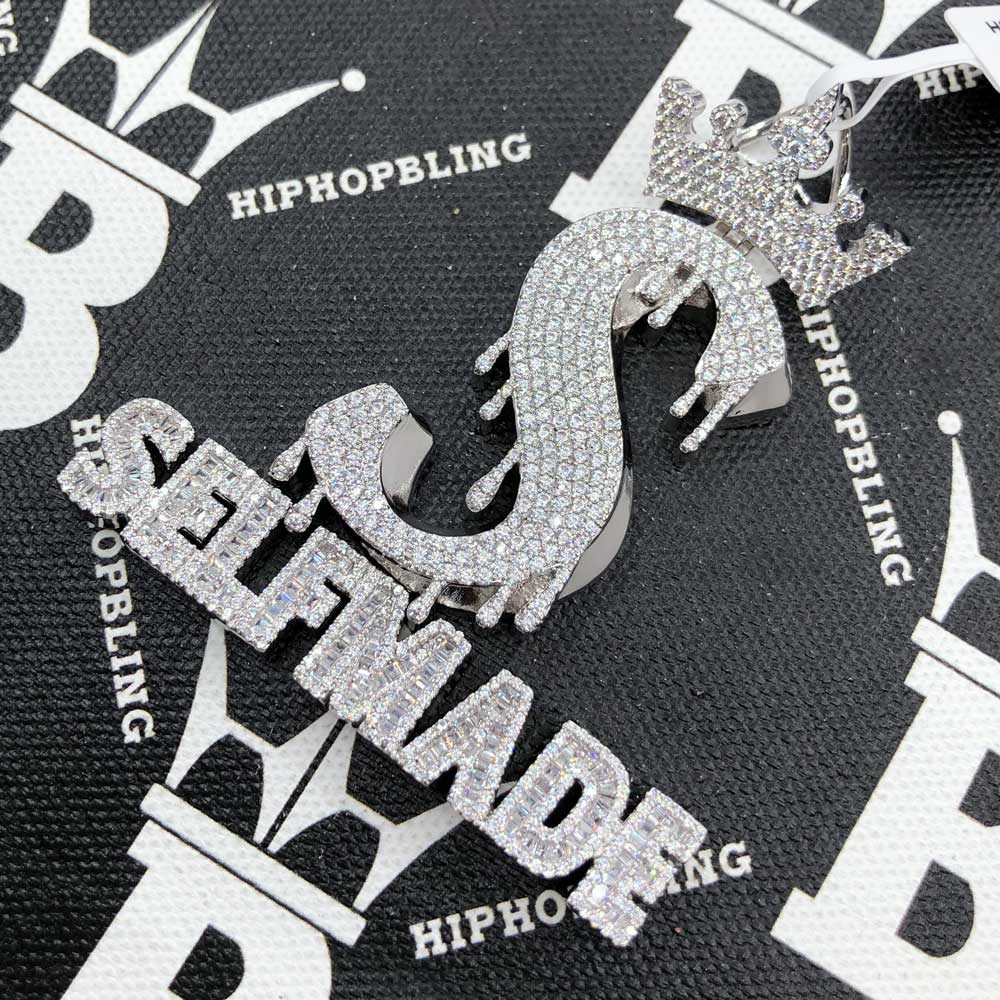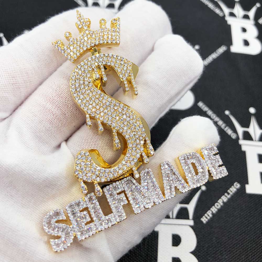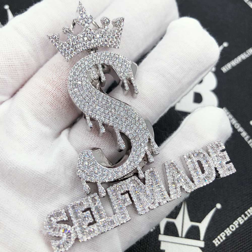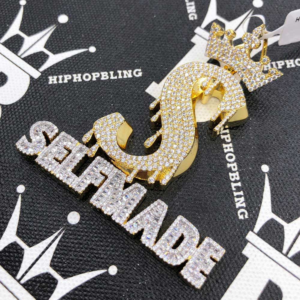 Self Made S Crown CZ Hip Hop Iced Out Pendant. Limited Edition Iced Out Hip Hop Pendant. Finely crafted with intricate details and stone setting. Stones are VVS Simulated Diamonds Prong Set, the same way genuine diamond hip hop jewelry is made. Stand out from the crowd with this this detailed quality made iced out pendant.