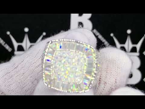 Cushion Baguette Iced Out VVS Moissanite Ring .925 Sterling Silver