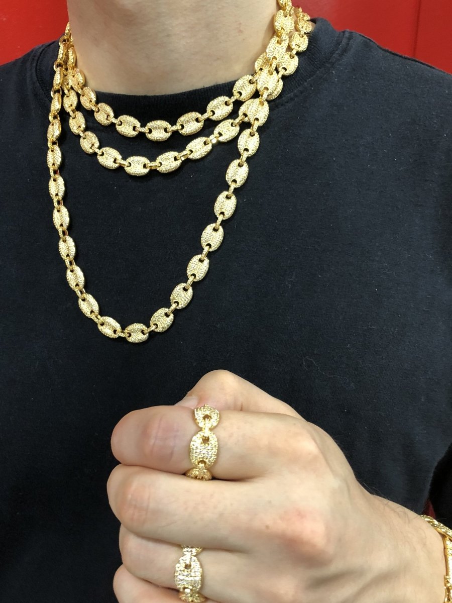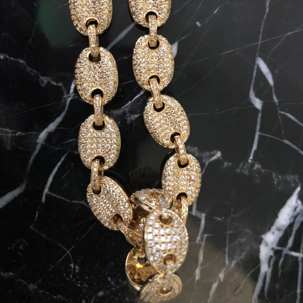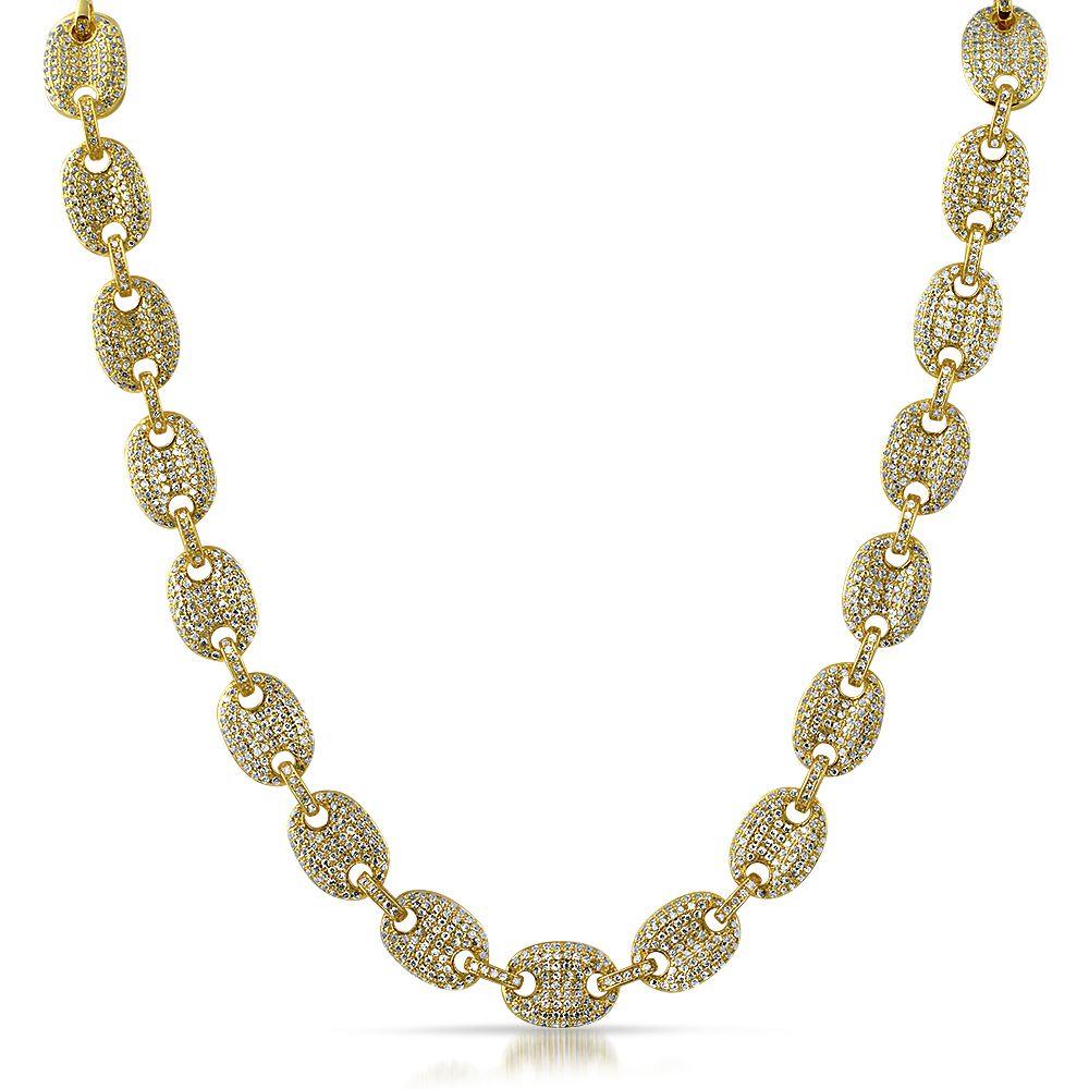 Bubble Link Marine Bling Bling Gold CZ Chain. This iced out version of a classic chain will ice up your neck. Choose from multiple lengths to find your perfect chain.