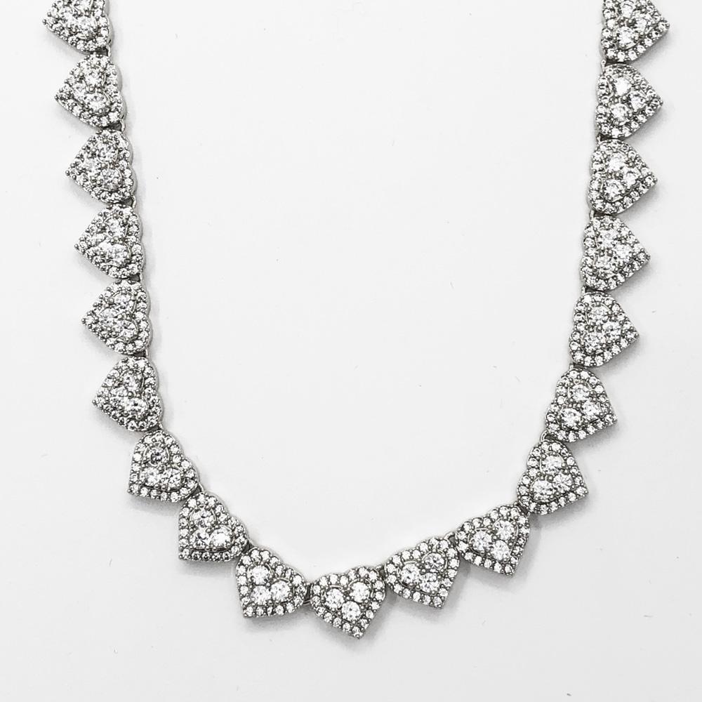 Heart Link Bling Bling CZ Iced Out Chain. Classic micro pave heart shaped tennis link style necklace.  Double heart links: The larger CZ stones form a heart within a pave heart border.  Highly detailed with intricate details and stone setting.  All stones are VVS Simulated Diamonds that are prong set.