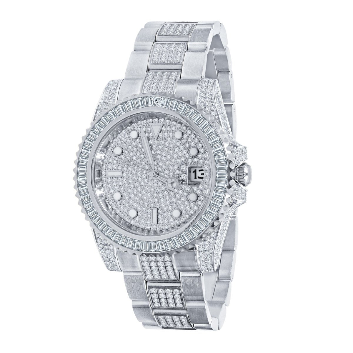 Baguette Bezel CZ Mid Link Date Hip Hop Watch. Incredible attention to detail and craftsmanship on this watch. Looks and feels and shines like a high end designer diamond watch. Crafted from Stainless Steel Metal for long lasting durability. Each stone is prong set by machine for precise beautiful stone setting that will leave you breathless. Stay iced up with this popular style bling bling watch around your wrist. Quality made so it looks like you got $50,000 on your wrist. Order yours today as stock is limited.