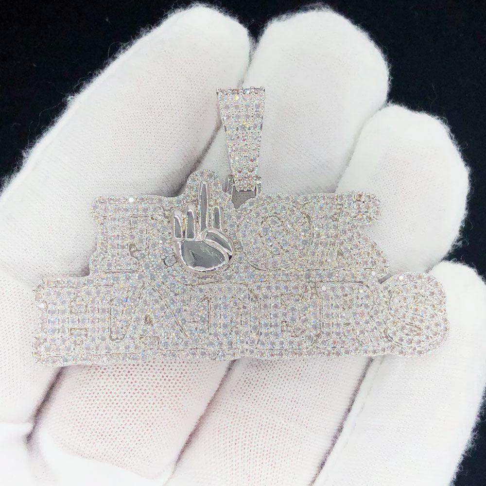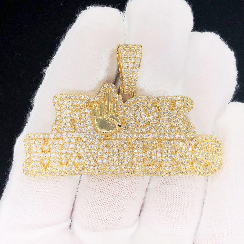 F Haters Middle Finger Iced Out Hip Hop Pendant. This hip hop pendant features round cut simulated diamonds giving this bling bling charm a unique shine and look to it. Beautifully crafted with precision stone setting. Hot style bling bling Pendant that is available in Yellow Gold or White Gold Plating options. The VVS CZ Simulated Diamonds have a bling bling shine as if they were genuine diamonds.