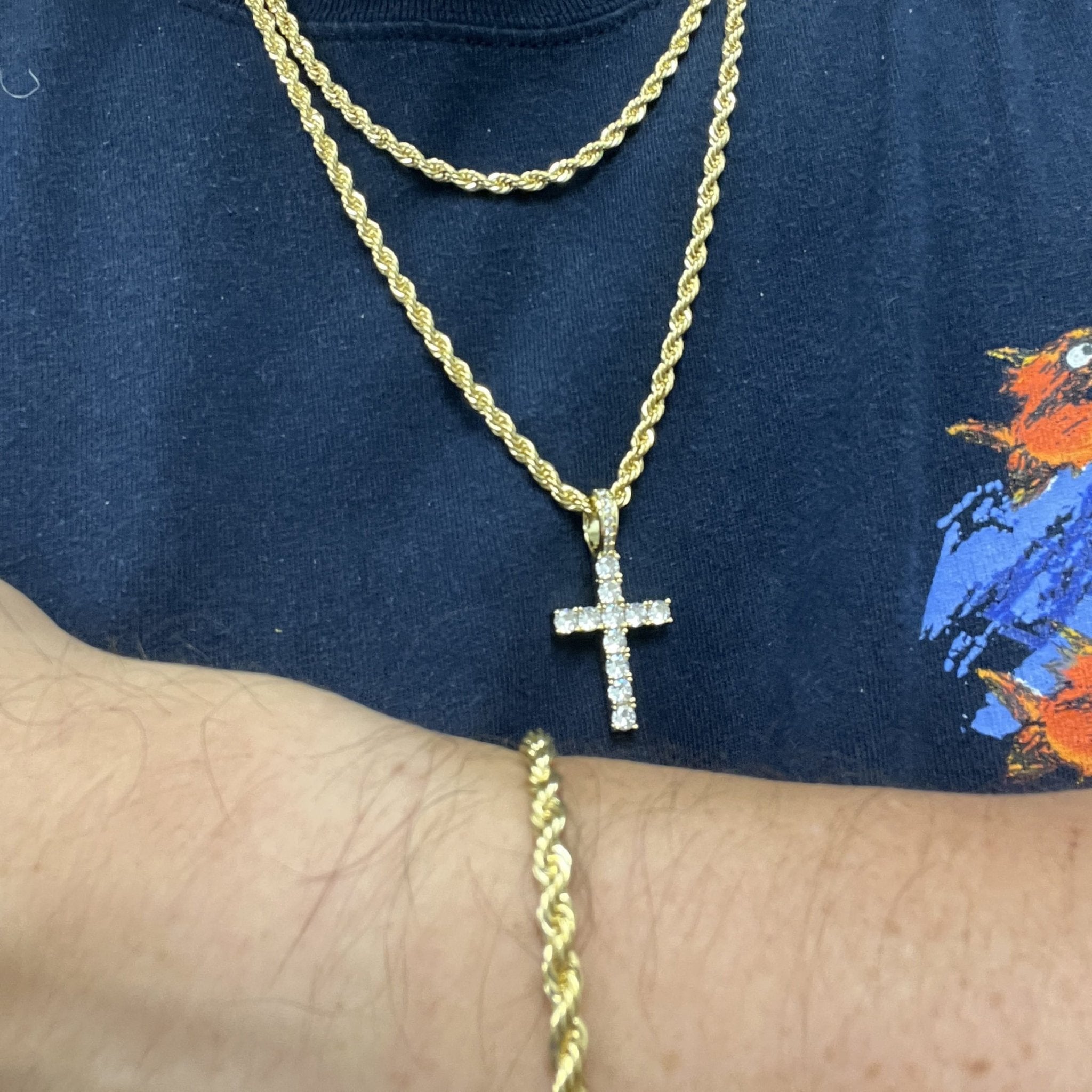 2 Gold Plated Chains Necklace and Bracelet Bundle. Choose from popular styles including Cuban, Rope, Figaro or Mariner. This bundle layers multiples chains to enhance your look. Made in Korea.