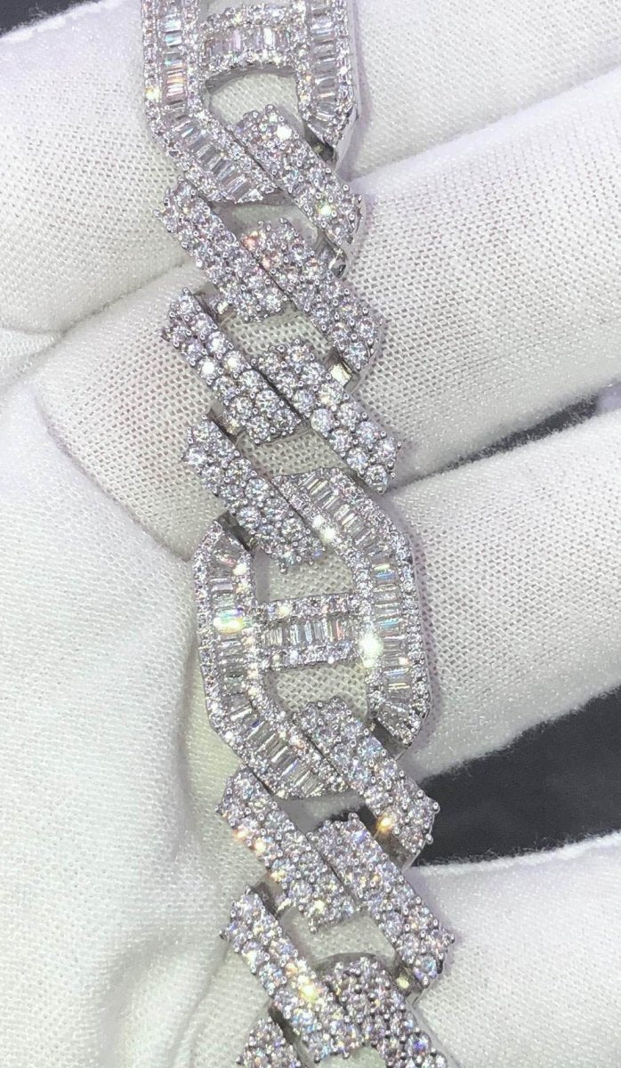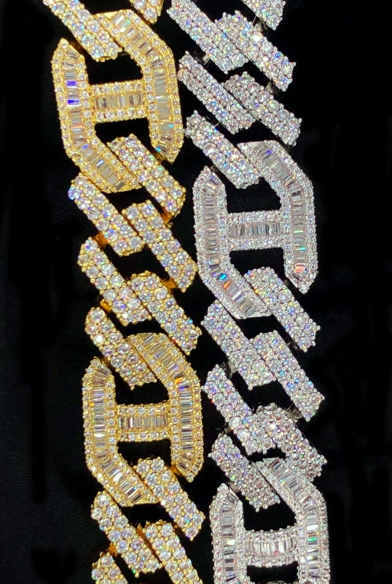 Sharp Baguette Mariner Figaro Iced Out Hip Hop Bracelet. Classic and Unique Style Bling Bling Bracelet. A Classic Chain Iced Out our way. Incredibly icy with VVS simulated diamond stones lighting up your wrist with the best shine possible. This iced out Bracelet shines like genuine diamonds. All hand setting, no glue. Hand Crafted to look, feel, and Shine Like Genuine Diamond Hip Hop Jewelry. Shine with the best hip hop jewels in the game.