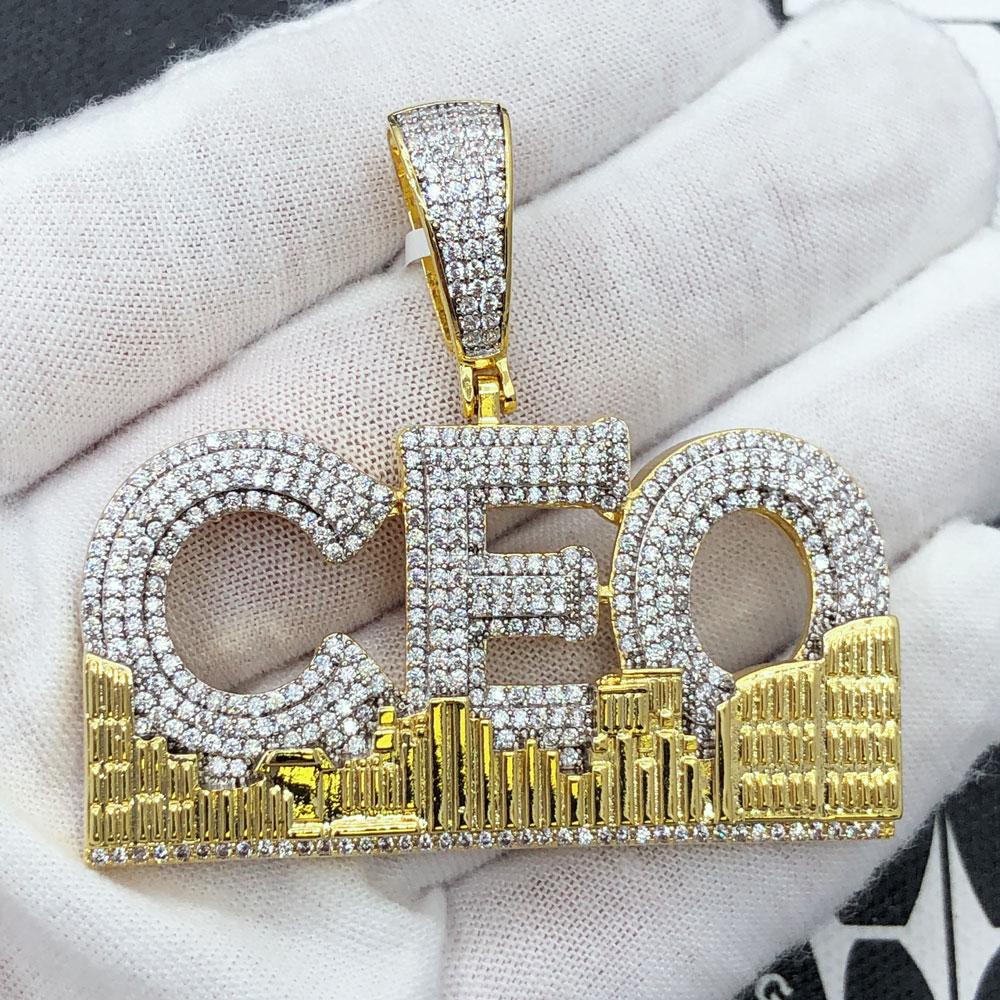 CEO Skyline CZ Hip Hop Bling Iced Out Pendant. Limited Edition Iced Out Hip Hop Pendant. Stones are VVS Simulated Diamonds Prong Set, the same way genuine diamond hip hop jewelry is made. Stand out from the crowd with this this detailed quality made iced out pendant.