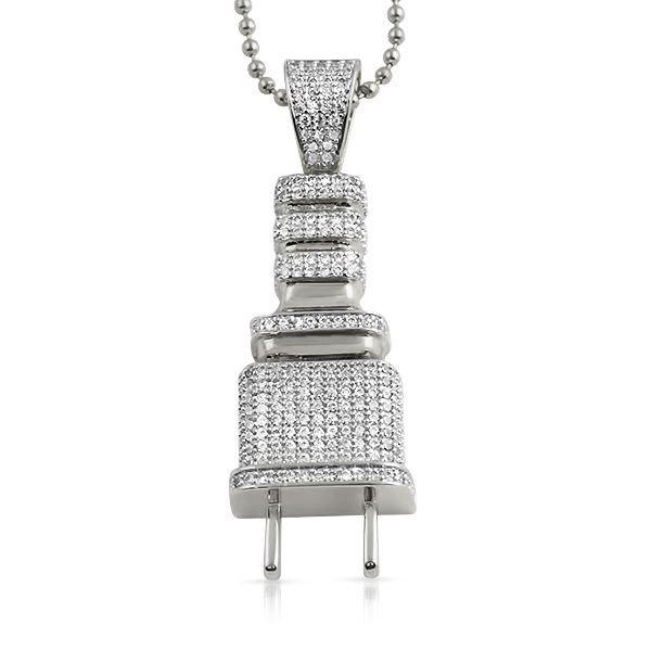 Small Plug CZ Bling Bling Pendant. This hip hop Plug is 3D and has a bling bling shine with great details. Rhodium plated to look and feel like White Gold. All stones are Micro Pave Hand Set, to shine and bling like genuine diamonds at a fraction of the cost.