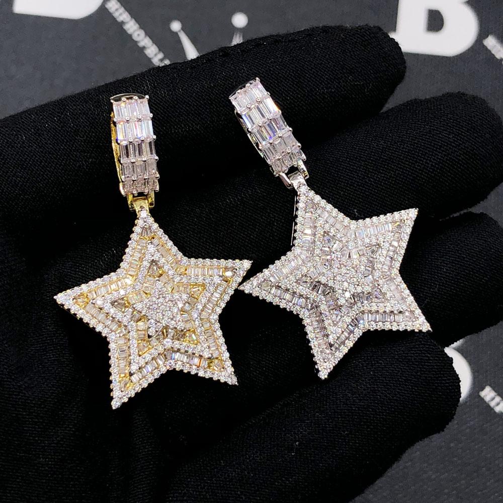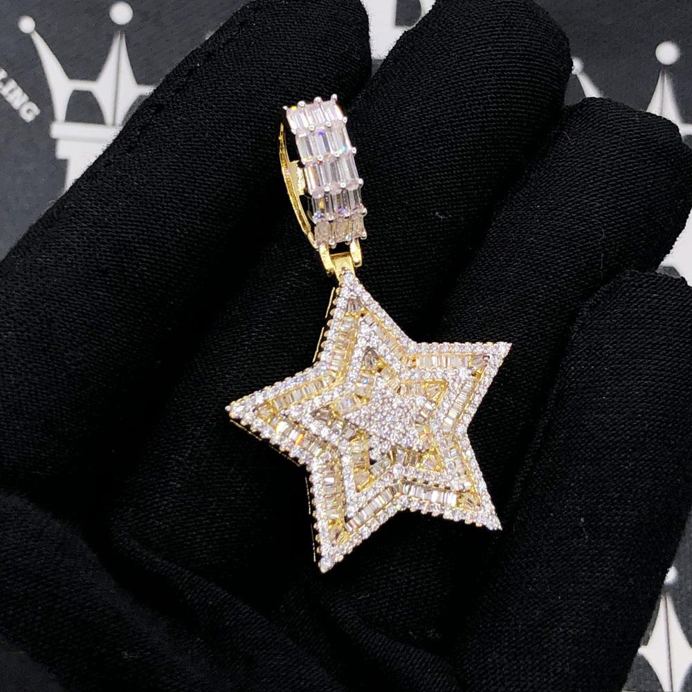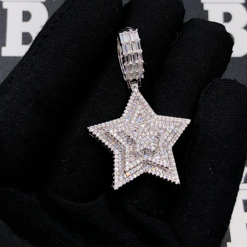 Star Baguette VVS CZ Hip Hop Bling Iced Out Pendant
