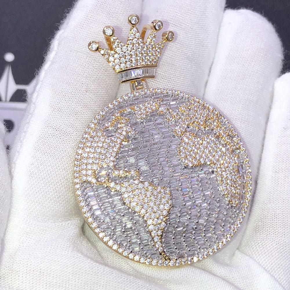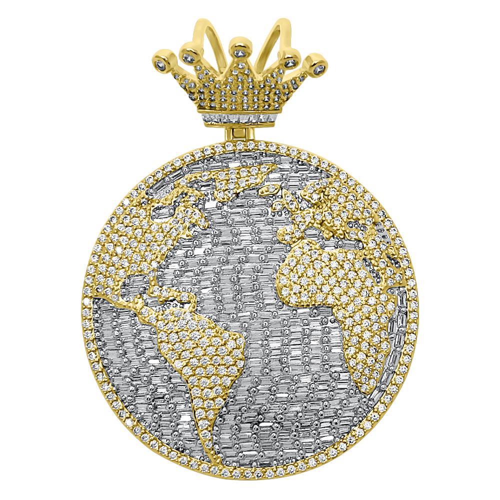 World Globe Baguette VVS CZ Hip Hop Iced Out Pendant. Limited Edition Iced Out Hip Hop Pendant. Stones are Baguette Cut and Round Cut VVS Simulated Diamonds Prong Set, the same way genuine diamond hip hop jewelry is made. Stand out from the crowd with this this detailed quality made iced out pendant.