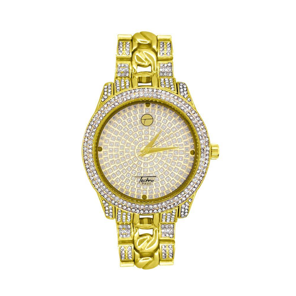 Cuban Link Pave Iced Out Bling Hip Hop Watch. Pave Bling Bling Bezel with a bling bling stone band. Shine up your wrist big time with this bling bling watch. This watch makes a statement on your wrist with all that ice. Order today, Fast USA Shipping.