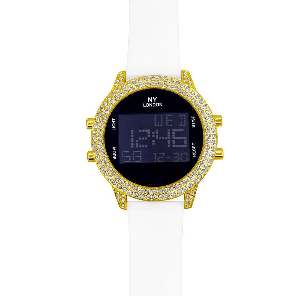 Digital Tech Iced Out Rubber Hip Hop Watch. Pave Bling Bling Bezel with a Rubber Band. Shine up your wrist big time with this bling bling watch. This watch makes a statement on your wrist with all that ice. Order today, Fast USA Shipping.