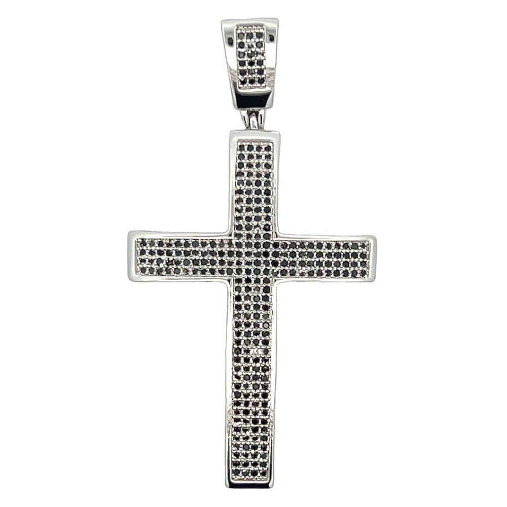 Rhodium Black 4 Row CZ Cross Iced Out Pendant