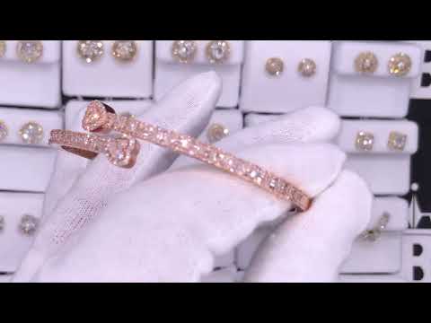 Heart Baguette Diamond Bangle Bracelet 10K Gold