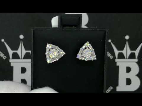 Triangle Baguette Cluster Diamond Earrings 14K White Gold. Quality crafted with 14K White Gold with round cut & Baguette cut natural real diamonds prong set. Ice your ears up with these shiny all real diamond hip hop earrings. Diamonds are real and hand set with prongs. Order your iced out diamond earrings today.