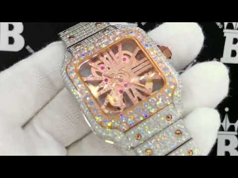 Skeleton Iced Out Baller Square CZ Bust Down Watch. Unique Skeleton Automatic movement with clear crystal on both sides to see through.  Incredible attention to detail and craftsmanship on this watch.  Looks and feels and shines like a high end designer diamond watch.  Crafted from Stainless Steel Metal for long lasting durability. Each stone is prong set by machine for precise beautiful stone setting that will leave you breathless. Stay iced up with this popular style bling bling watch around your wrist. Quality made so it looks like you got $80,000 on your wrist. Order yours today as stock is limited.