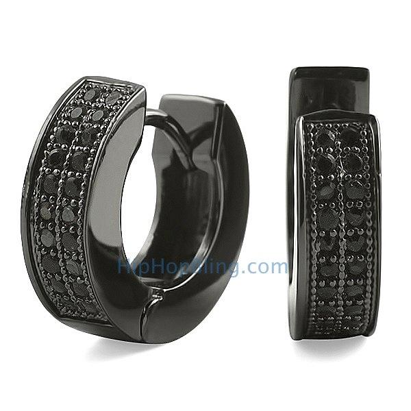 2 Row Huggie Black CZ Micro Pave Hoop Earrings