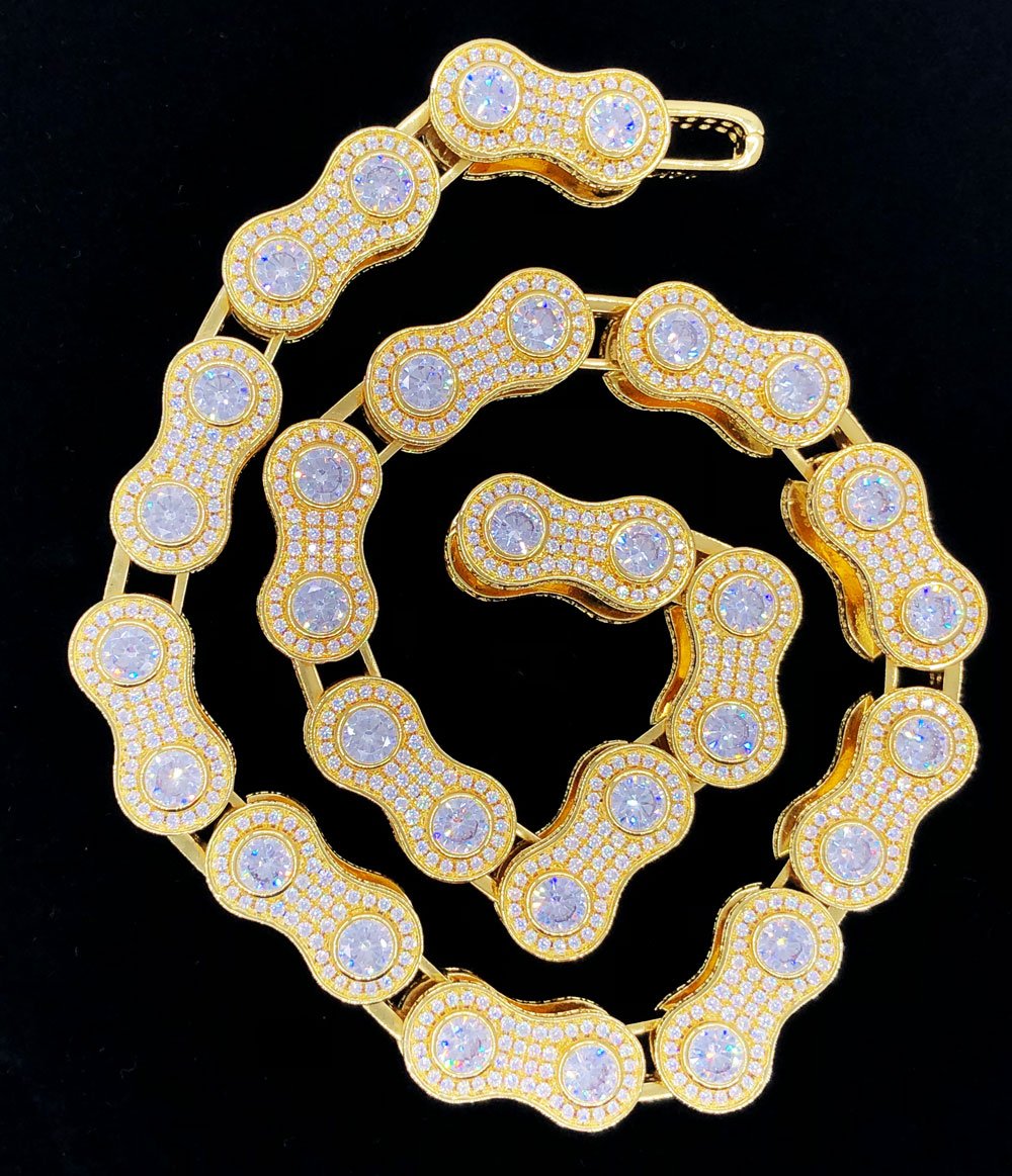 3D Bike Link Bling Bling CZ Iced Out Chain. This unique hip hop chain micro pave fully iced out to add maximum shine to your neck. Highly detailed with intricate details and stone setting. All stones are VVS Simulated Diamonds that are prong set.