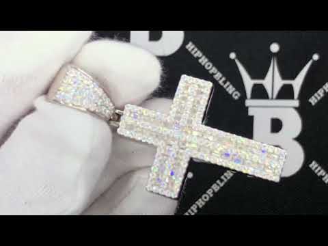 5 Row Baguette Cross VVS Moissanite Pendant 2.83cttw .925 Sterling Silver. This iced out Moissanite Pendant is simply breathtaking and displays an incredible bling bling shine. We insisted on using the finest Moissanite stones available to craft this perfect high end 'diamond' bling bling Moissanite Micro Pave Charm. Moissanite stones are carbon based stones just like real Diamonds. The benefit of our Moissanite hip hop jewelry is that you get a better shine for much less money than genuine Diamonds. Our Moissanite Stones have a higher refractive index than real Diamonds and rank 9-9.5 on Mohs hardness scale.