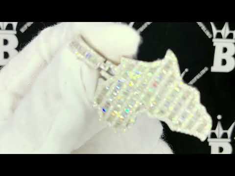 Africa Baguette 3.12cttw VVS Moissanite Pendant .925 Sterling Silver. This iced out Moissanite Pendant is simply breathtaking and displays an incredible bling bling shine. We insisted on using the finest Moissanite stones available to craft this perfect high end 'diamond' bling bling Moissanite Micro Pave Charm. Moissanite stones are carbon based stones just like real Diamonds. The benefit of our Moissanite hip hop jewelry is that you get a better shine for much less money than genuine Diamonds. Our Moissanite Stones have a higher refractive index than real Diamonds and rank 9-9.5 on Mohs hardness scale.