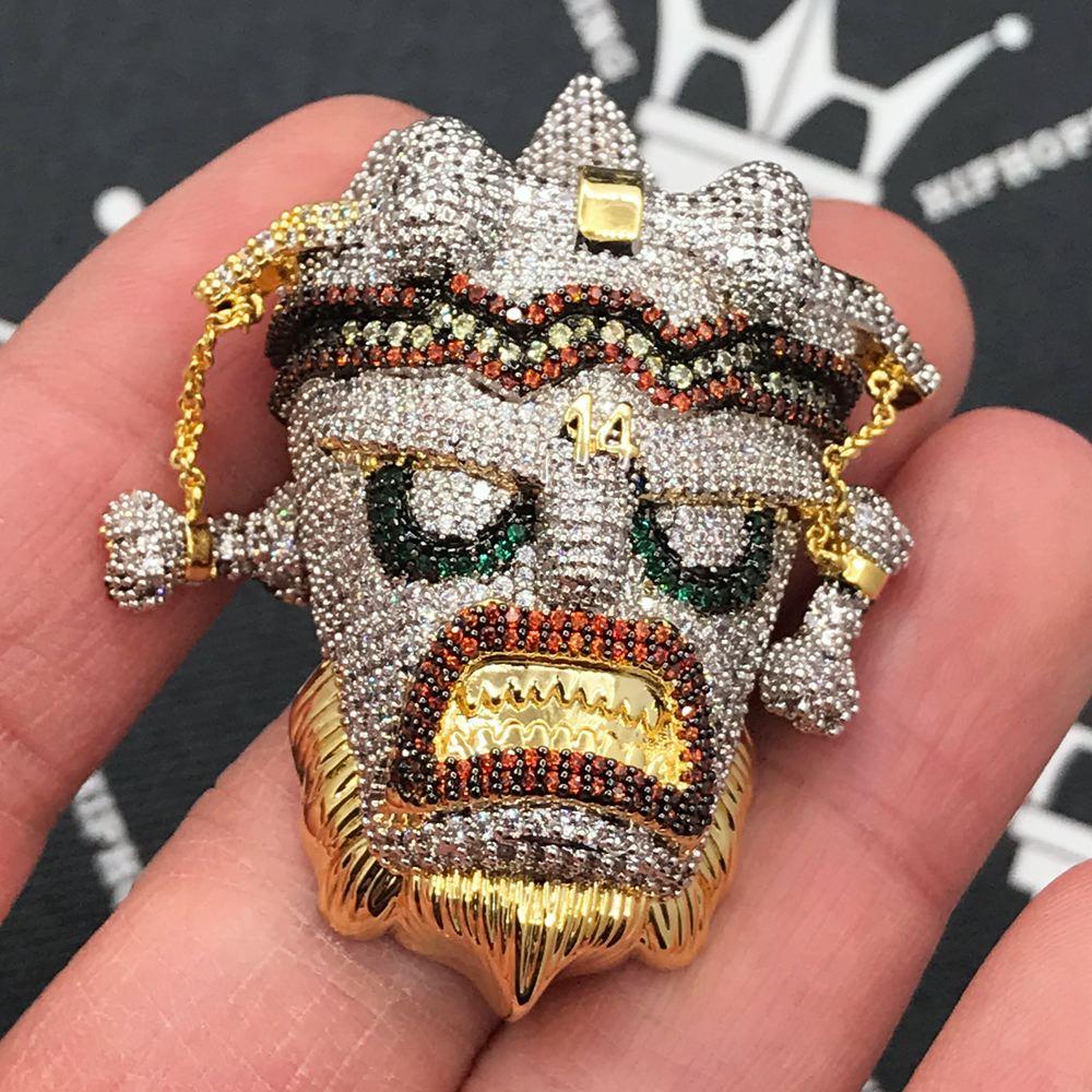 African Statue 3D CZ Hip Hop Bling Bling Pendant. Limited Edition Iced Out Hip Hop Pendant. Stones are VVS Simulated Diamonds Prong Set, the same way genuine diamond hip hop jewelry is made. Stand out from the crowd with this this detailed quality made iced out pendant.