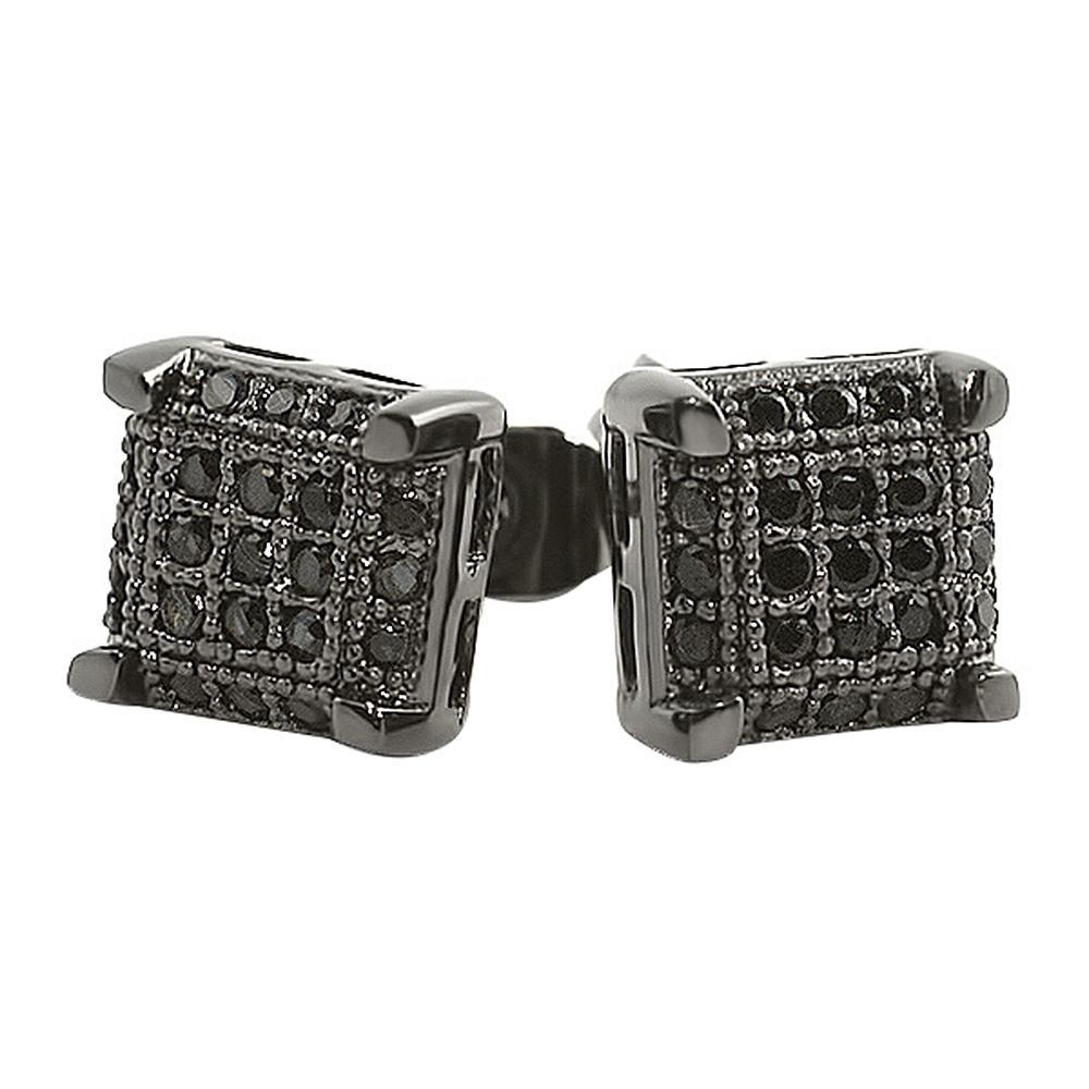 Black CZ Small Cube Micro Pave Earrings.  Get the maximum bling bling shine with these iced out earrings.  Stones are VVS Simulated Diamonds which are Prong Set and crafted to perfection. Ice up your ears with these amazing hip hop earrings.  Order your Hip Hop Bling Earrings today.