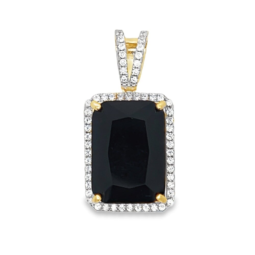 Black Gem Pendant CZ Pendant .925 Sterling Silver. Quality crafted hip hop bling pendant. Crafted from fine .925 Sterling Silver and wrapped to look and feel like solid Gold at a fraction of the cost. Prong set CZ Cubic Zirconia stones, set with precision gives this iced out pendant a beautiful and bright bling bling shine. A must have in your hip hop jewelry collection.