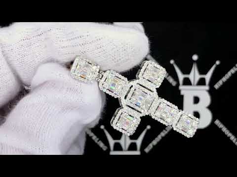 Cluster Cross Baguette 2.83cttw VVS Moissanite Pendant .925 Sterling Silver.  This iced out Moissanite Pendant is simply breathtaking and displays an incredible bling bling shine.  We insisted on using the finest Moissanite stones available to craft this perfect high end 'diamond' bling bling Moissanite Micro Pave Charm.  Moissanite stones are carbon based stones just like real Diamonds.  The benefit of our Moissanite hip hop jewelry is that you get a better shine for much less money than genuine Diamonds.  Our Moissanite Stones have a higher refractive index than real Diamonds and rank 9-9.5 on Mohs hardness scale.