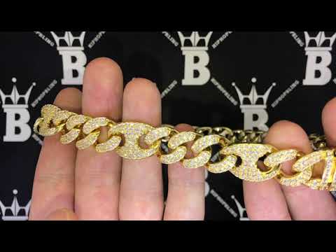 Cuban Mariner Link CZ Bling Bling Iced Out Chain. This uniquely crafted chain models the Figaro Pattern with Cuban Links and the Marine Links replacing the standard oval links. Top quality Simulated Diamonds and bold style that will keep you shining in the club and other exclusive events. Highly detailed with intricate details and stone setting. All stones are VVS Simulated Diamonds that are prong set.