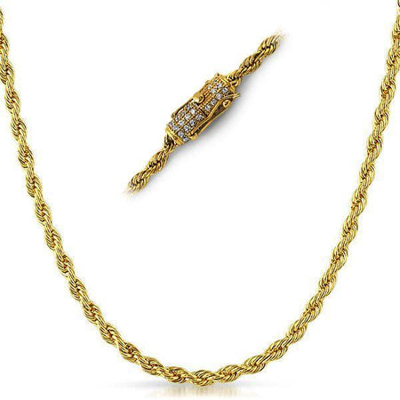 CZ Clasp Rope Gold Stainless Steel Chain 4MM