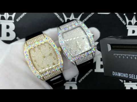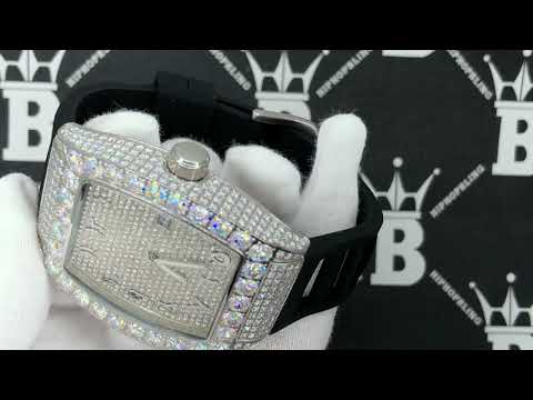 Emperor Rubber Strap VVS Moissanite Iced Out Watch. Crafted with hand set VVS Moissanite stones that pass common pen diamond testers.  Incredible attention to detail and craftsmanship on this watch.  Looks and feels and shines like a high end designer diamond watch.  Crafted from Stainless Steel Metal for long lasting durability. Each VVS Moissanite stone is prong set with precision to create a beautiful stone setting that will leave you breathless. Stay iced up with this popular style bling bling watch around your wrist. Quality made so it looks like you got $200,000 on your wrist. Order yours today as stock is limited.