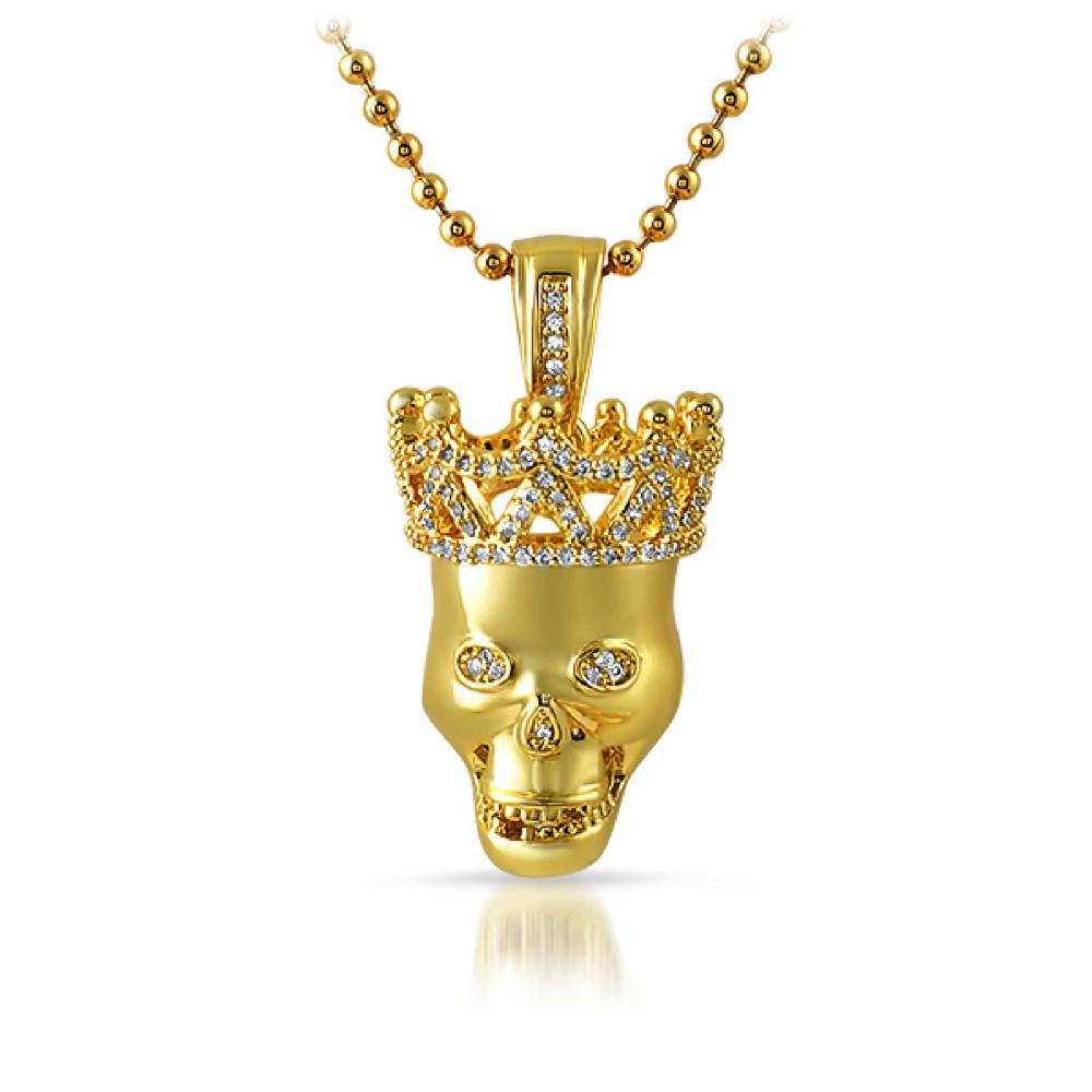 Gold Skull hip hop pendant. This Skull jewelry is designed with the best details. The crown is full 3D and covered in prong set CZ Diamond stones. Great details in every part of this skull pendant.
