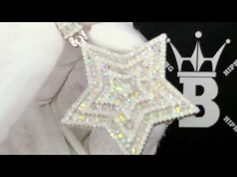 Layered Star Baguette VVS Moissanite Pendant 3.73cttw .925 Sterling Silver.  This iced out Moissanite Pendant is simply breathtaking and displays an incredible bling bling shine.  We insisted on using the finest Moissanite stones available to craft this perfect high end 'diamond' bling bling Moissanite Micro Pave Charm.  Moissanite stones are carbon based stones just like real Diamonds.  The benefit of our Moissanite hip hop jewelry is that you get a better shine for much less money than genuine Diamonds.  Our Moissanite Stones have a higher refractive index than real Diamonds and rank 9-9.5 on Mohs hardness scale.