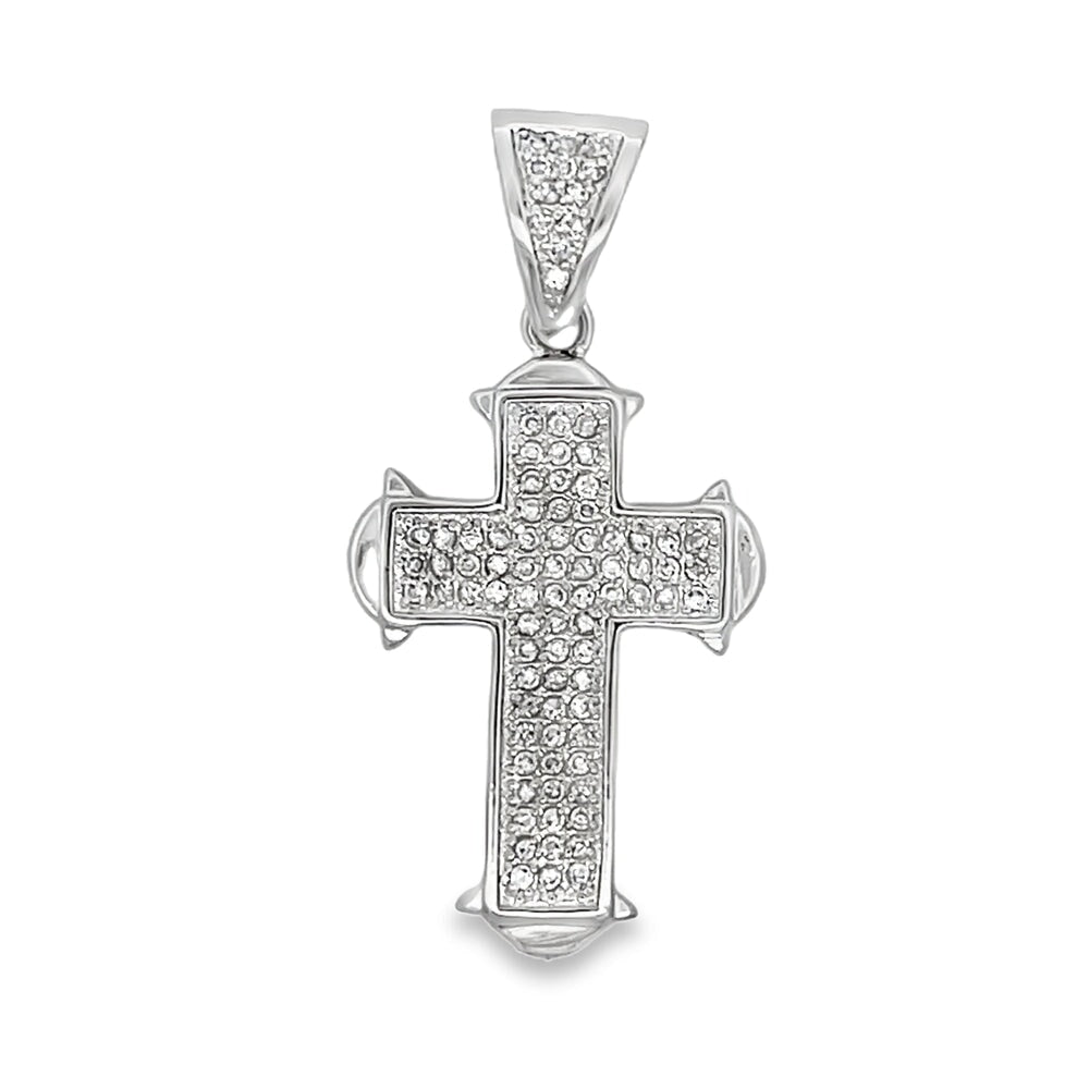 Polished Edge Cross CZ Pendant .925 Sterling Silver. Quality crafted hip hop bling pendant. Crafted from fine .925 Sterling Silver and wrapped to look and feel like solid Gold at a fraction of the cost. Prong set CZ Cubic Zirconia stones, set with precision gives this iced out pendant a beautiful and bright bling bling shine. A must have in your hip hop jewelry collection.