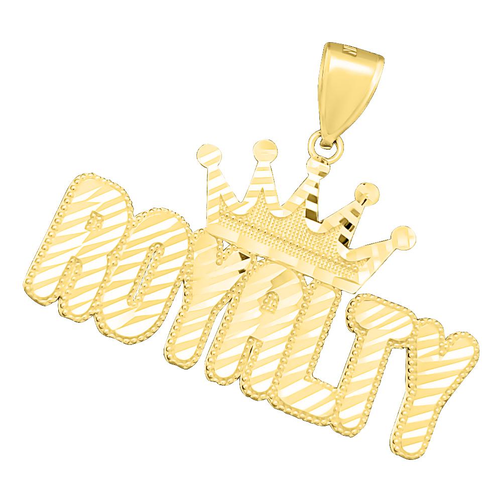 ROYALTY Crown DC 10K Yellow Gold Pendant. Crafted from Solid 10K Yellow Gold and intricately detailed with Diamond Cuts for added sparkle. All real solid 10K Gold quality made at an affordable price.
