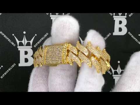 Spiked Cuban Link Iced Out Hip Hop Bracelet.  Popular Cuban Links with Spike Links Unique Style Bling Bling Bracelet. Incredibly icy with VVS simulated diamond stones lighting up your wrist with the best shine possible. This iced out Bracelet shines like genuine diamonds.  All hand setting, no glue. Shine with the best hip hop jewels in the game.